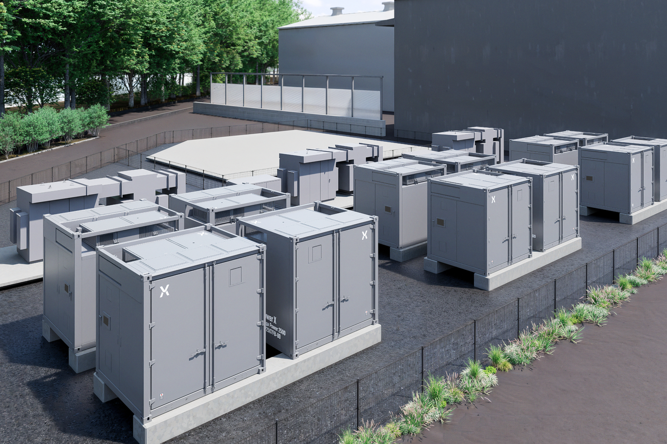 また、プレスリリースの完成予想図によると、容量2.51MWhのパワーエックス製コンテナ型定置用蓄電池「Mega Power 2500」を、32基設置する見込みだ。